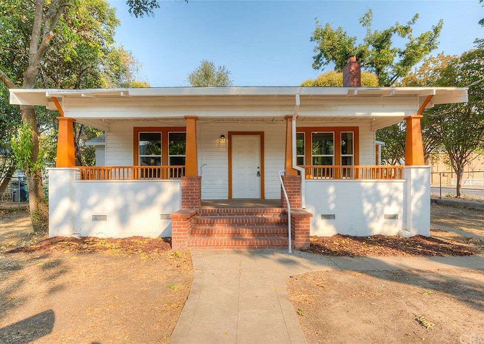 For the love of old houses! Check out this quaintly restored historic Craftsman Bungalow in downtown Oroville. Nestled on a large corner lot with mature shade trees the extra wide, and inviting front porch leads you to the living room where you'll find built ins, original craftsman style trim, a pellet stove on a brick hearth and original oak hardwood floors. Meander into the breakfast nook for an abundance of light along with neighborhood views. The galley style kitchen has vinyl plank flooring and new counters. The extra-large laundry room is off the kitchen and has its own entrance to the side yard. You'll find the Jack and Jill style guest bedrooms located toward the back of the house, and the master towards the front. The yard is fully fenced and cross fenced. This stunning home has a brand new central heat and air conditioning system, all new vinyl dual pane windows, fresh paint inside and out, original & refreshed hardwood flooring in the bedrooms, living room and dining room, plus vinyl plank flooring at kitchen, breakfast nook, bath and laundry and the roof is only 8 years old!! The location is walking distance to schools, parks and historic downtown Oroville. Don't wait come take a peek at what coudl be your new home today.