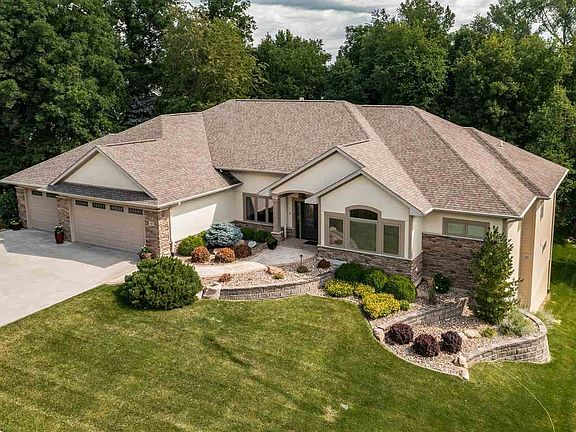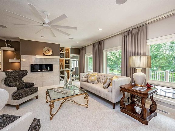 This stunning home is sure to wow you! Situated on almost an acre of land, surrounded by trees & beautiful landscaping. The expansive floor plan is thoughtfully laid out with everything you need on the main level, including the sizable primary suite that will make you feel like royalty! The primary ensuite bathroom features heated floors, a whirlpool bathtub, walk-in tiled shower, & make-up vanity. Adjacent to the bathroom is the spacious, custom, walk-in closet with an island dresser. On the main level, you'll also find an office, living room, half-bath, family room, dining room, walk-in pantry, & gorgeous gourmet kitchen with an additional dining area, & 22-foot island breakfast bar! Heading down to the lower level you'll continue to find luxury! The walk-out basement is the ultimate entertainment spot! Enjoy movies in the home theater with surround sound. Serve up drinks from the full wet bar & take them out back to enjoy on the stamped patio with gas firepit. Rounding out the lower level are 3 bedrooms, each with their own bathroom. Geothermal HVAC with air exchange, Lutron Homeworks Smart electrical & whole home entertainment system with Fire Safety, ADT full camera security system; just to name a few of the special additional features of this home! So much to see & talk about; there's too much to list! Come experience the luxury that could be yours!