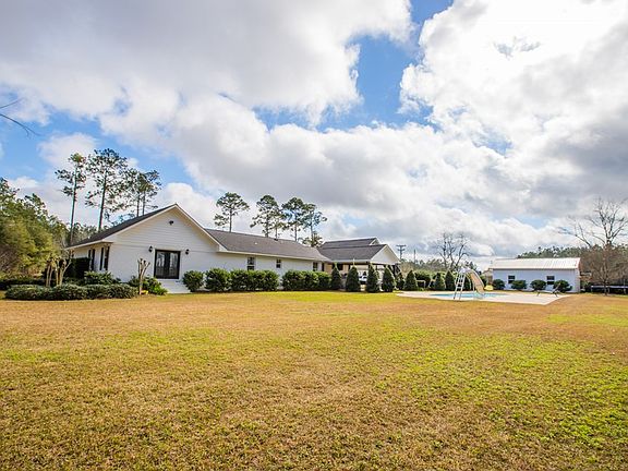 This classic home just outside of Bainbridge and a short drive to Lake Seminole offers many updates and features that will make moving right in a breeze. Outside you'll find a professionally landscaped lawn, stacked stone outdoor kitchen and eating area with television, durable fiberglass pool surrounded by pavers, workshop/storage building, and a spacious two car carport with an office/bonus/storage room over the top. The kitchen features beautiful, custom solid wood cabinets that's open to the dining area, which has it's own cabinetry for serving and storage. The den that's just off of the carport is set up with a custom, built-in entertainment center with a glass front gun cabinet. The dining room comfortably holds a table for eight. The two smaller bedrooms are accessed from the dining area and feature lots of closet space and great natural lighting. The living room features a custom built-in entertainment cabinet with room for a television and display shelving. The spacious master suite features vaulted ceilings, separate his/hers closets that will accommodate for an abundance of clothes, tiled shower with glass enclosure, and double sink vanity. There are very few homes that offer the value and turn-key nature of this home. If you want to set your family up for a lifetime of wonderful memories, this home is calling your name. Additional acreage and workshops are available.