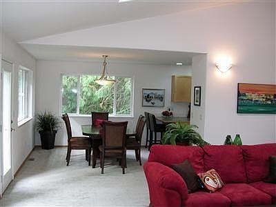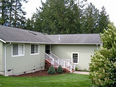 Like-new 1752 SF rambler is gorgeous inside & move-in ready. Large Great Room opens to vaulted ceiling & vast window expanse w/view toward green belt. So private, windows don't even need shades! Open plan into Dining & Kitchen. 3BRs, 2.5 BAs w/separate Office, so Bedrooms can be Bedrooms. Gas fireplace in Great Room & 5 skylights for light play. Lovely rear deck setting. "Tall" storage spaces under. Great price performer with wonderful Shelter Bay amenities. 28-year loan available.