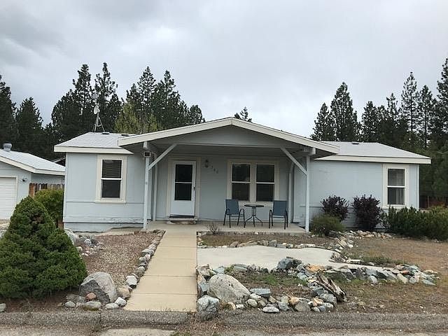 Enjoy the unbeatable mountain views from this charming, well-maintained home in the highly desirable and peaceful Ridgewood Estates community. Bright, sunny, and move-in ready, this well cared-for 3-bedroom, 2-bath manufactured home features fresh interior paint and new laminate flooring in the kitchen. Other new features include a generator, security system, and a water filtration system. The spacious layout includes a detached 2-car garage, a large powered workshop perfect for hobbies or storage, and a beautiful corner lot shaded by mature trees. The fully fenced backyard offers ample space for entertaining family and friends, while the welcoming front porch is the ideal spot to sip your morning coffee and take in stunning views of Beckwourth Peak. Located just a short walk to Portola High School, this quiet neighborhood also offers easy access to hiking and biking trails that connect to miles of scenic public lands—perfect for outdoor lovers and active lifestyles. This one won’t last—schedule your private showing today!