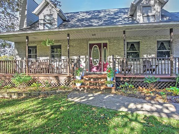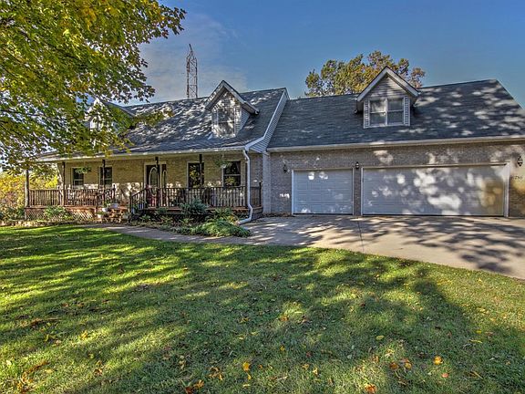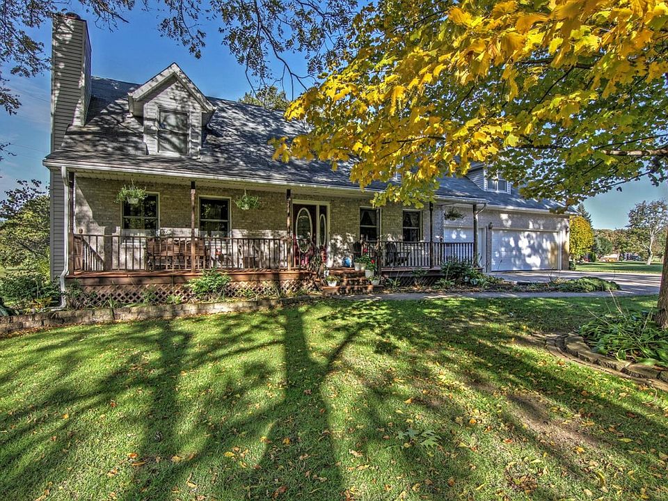 Park like 1.16A lot and 4 bedroom 3 bath Cape Cod with oversized 2.5 car garage! Huge front covered porch greets you as you enter the ceramic foyer open to living room and formal dining with laminate flooring, large kitchen features maple cabinets with under cabinet lighting, island, crown molding & sliders to back deck, full bath, bedroom and 11x09 laundry with door to garage & deck complete the main level, upper level offers huge master with vaulted ceilings, private 3/4 bath, walk-in closet and access to 19x18 bonus room (also accessible from garage) and 2 additional bedrooms with jack-n-jill bath, unfinished walk-out basement has rough-in for bath and a fireplace, central air, roof and siding approx. 8 years old, 6 panel white doors and trim, in-ground sprinklers and more close to new hospital and State Road 49!