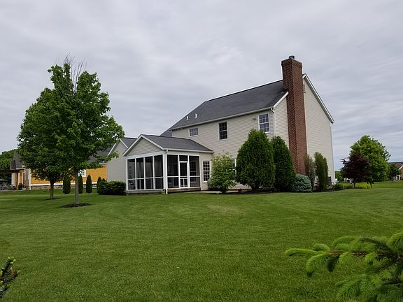 Welcome home to this beautiful 2 story colonial in desirable Danbury Glen Estates! This immaculate 4-bedroom, 3.5 bath home has been excellently maintained by the original owner. Upon entering, you will be greeted by an expansive 2 story foyer w/ hardwood floors leading to & throughout the large eat-in kitchen complete w/ granite counters, ample cabinetry & bar top island. Enjoy the outdoors (without the bugs) in the screened-in porch located off the kitchen via sliding glass door or cozy up in the great room by the inviting stone gas fireplace. The first floor has a formal dining room for entertaining & office/den which could also be a playroom. Ascending the beautiful staircase, you will find 4 spacious bedrooms w/ walk-in closets. Large master suite has 2 walk-in closets, master bath w/dual sinks, soaking tub & separate shower. Additional full bath w/ dual sinks is off the upstairs hallway near the remaining bedrooms. Enjoy a movie night or entertain friends in your finished lower level media room complete with 90" HD projection screen, surround sound, bar, countertop w/sink, refrigerator & full bath! Large 1st floor laundry & mudroom is located off the 3+ car heated garage w/extra storage. This home also boasts a surround sound system throughout the first floor, deck, & garage. Danbury Glen Estates is located in Lake Local Schools w/ amenities feat. clubhouse, heated pool, basketball court & walking path around the stocked pond. Come see everything this home has to offer!