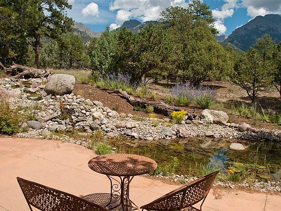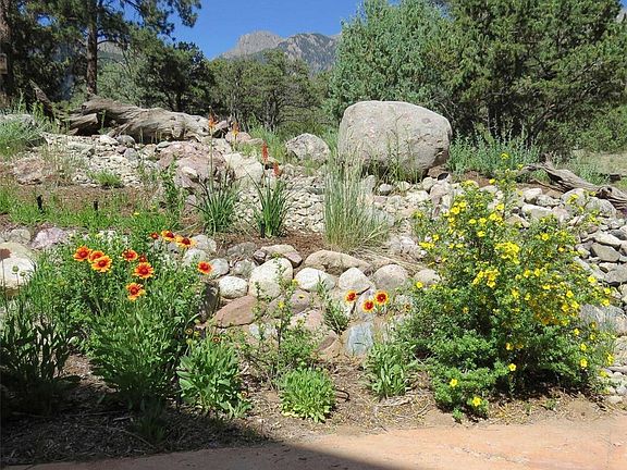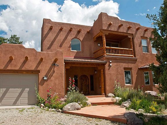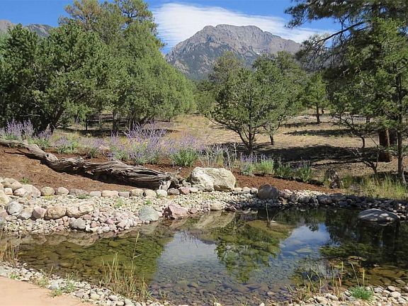 Built by Lee Mitchell in 2005, this elegant 3 BR 2.5BA home is on 2.787 acres (includes former Lots 780-784) on private cul-de-sac. It was built to capture exquisite mountain views. The open floor plan has a beautiful great room that opens to the east patio with a water feature and landscape. Wood ceilings with vigas add a warm Southwestern influence. The spacious kitchen with quality appliances opens to the great room. In-floor radiant heat is supplemented with a beautiful Hearthstone woodstove with stone surround in living room. The upstairs master suite includes a sitting room and fabulous master bathroom with soak tub looking to the valley, a separate shower, and a large walk-in closet. The suite opens to an expansive balcony with full on mountain views. Downstairs are additional bedrooms and another full bathroom and a half bath in one bedroom that could be an office. The attached two car garage and beautiful landscaped with zoned water systems and outside flowing water fe