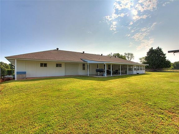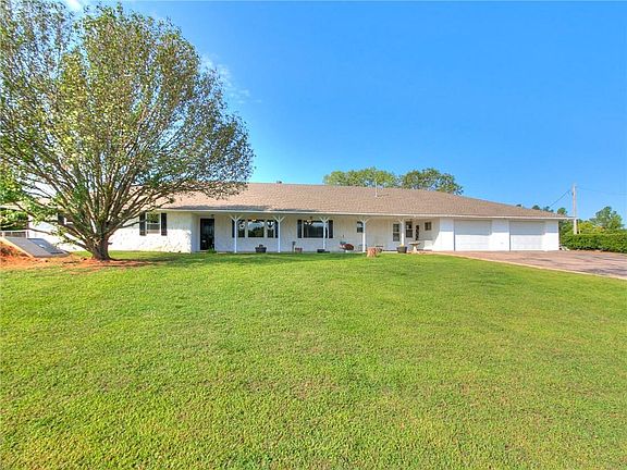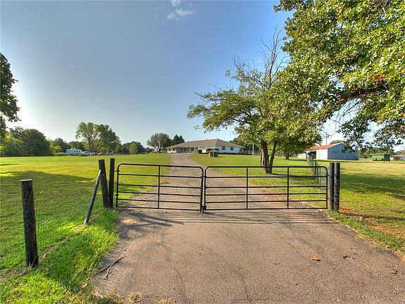 Very well maintained Ranch style home sitting on 5 Acres fenced and cross fenced ready for you to bring your animals!!! Sitting outside the the city limits and agriculturally zoned, This 3 bedroom 2 and a half bath home has been completely updated from top to bottom. New paint, inside and out, new Roof, new granite, new flooring, and carpet. There is a wonderful florida room off the back that is included in the square footage. Wonderful covered porches in the front and the back to enjoy those sunrises and sunsets. This home has tons of storage with a mud room and the garage is extremely oversized with large work area and built in cabinets. There is storage above the garage with inside stairs for easy attic access. There is RV parking/paved driveway, 2 Storm shelters, one in garage and one just put in outside, the barn/workshop has electric in it, a well house and so much more that can only be seen by coming for your own personal tour.