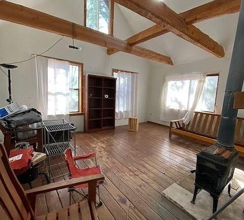 - Interior Features: Vaulted Ceilings, Skylights, Flooring: Wood, Wood Stove