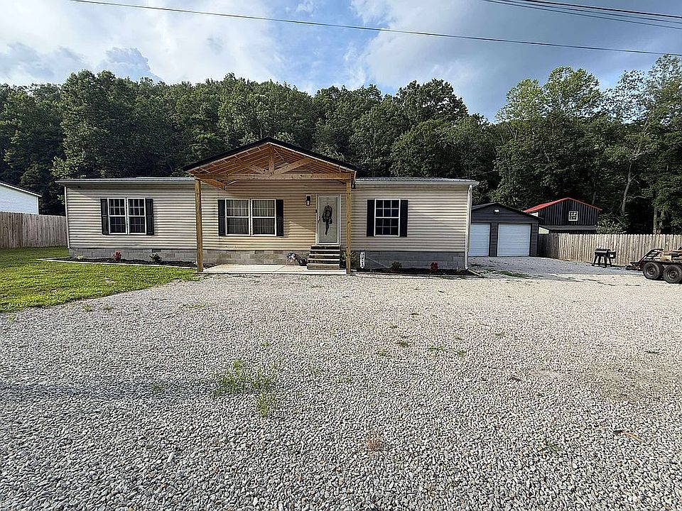 ?? Charming 56x30 3-Bedroom 2 - bath Double Wide on 1 Acre with a 35x24 Detached Garage & More! Welcome to this spacious and well-maintained 3-bedroom, 2-bath double wide home nestled on a beautiful 1-acre lot. Enjoy the comfort of open-concept living, featuring a bright living room, a functional kitchen with ample cabinetry, and a cozy dining area perfect for family meals. Relax and unwind on either the front or back covered porches, offering great spots for morning coffee or evening sunsets. Outside, you’ll find a large detached 2-car garage providing plenty of room for vehicles, hobbies, or a workshop. There’s also a handy storage shed for lawn equipment and extra storage needs. This property offers the peace and privacy of country living while still being conveniently located to nearby amenities. Don’t miss your chance to make this wonderful home your own!