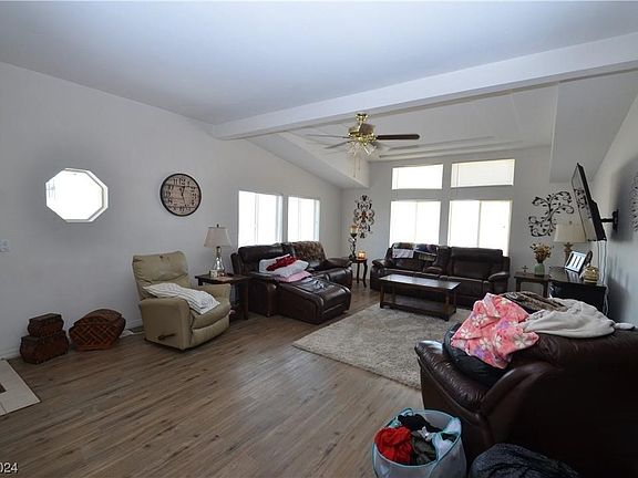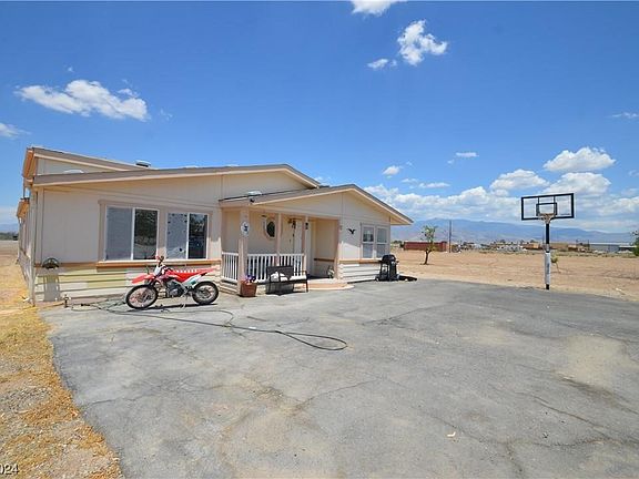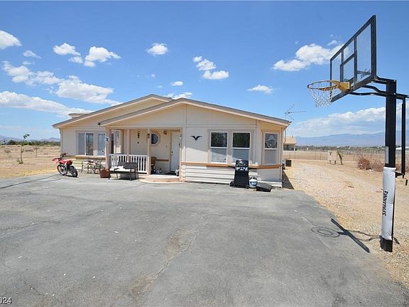 Move to Pahrump and enjoy the rural lifestyle and wide-open space while only being 40 min from the hustle and bustle of Las Vegas. On this fully fenced 2.3-acre parcel there are 2 manufactured homes. Both structures have been converted to real property. One was a double wide and the other a triple wide giving you an actual combined square footage of 3,171! There are five total bedrooms and 4 full bathrooms. Driveway is fully paved and has basketball hoop. The large carport will keep your vehicle shaded from the hot sun. The larger of the 2 homes has a front covered porch, vaulted ceiling, wood laminate floors, ceiling fans throughout, white appliances and ample storage in the spacious kitchen. Dining area off the living room, oversized primary bedroom and the bath has a deep soaker tub. There is no HOA so you could rent the smaller home for income. This property is also zoned for horses! Must see to appreciate.
