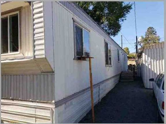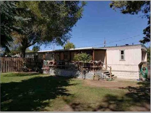 Older single wide home very well kept. Updated windows and new EPDM roofing done 2 years ago.Master bath has a garden style tub. Big yard fenced with gate access to a garden area. On 2 city lots. Detached garage and small storage.