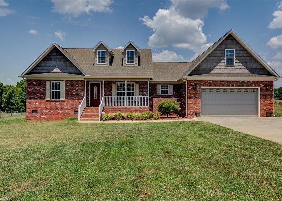 Beautiful transitional brick front home in Maegeo Farm! 3 bedrooms, 2 bathrooms, master suite on main w/tray ceiling, dual sinks, walk -in closet, separate shower and tub. This house offers a spacious open floor plan, upgraded kitchen cabinets, fireplace, and a large upstairs bonus room! The outside is highlighted by a rocking-chair front porch, spacious driveway, ample back deck, nice landscaping, garden space and beautiful scenery on a large lot! USDA eligible!