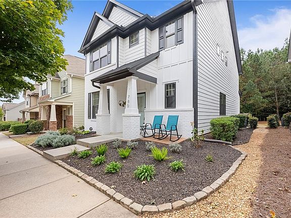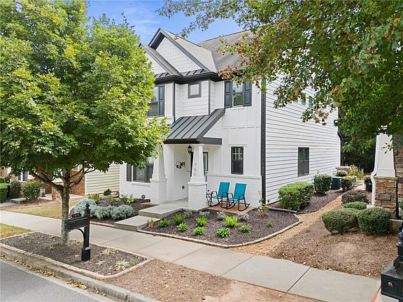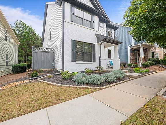 Welcome to this exceptionally well-cared-for home in the sought-after Village Grove neighborhood, offering comfortable living in an unbeatable Suwanee location. The exterior has been freshly painted a crisp white, complemented by custom landscaping that creates striking curb appeal. Inside, the open-concept floor plan features a granite kitchen with a gas range, easy-to-maintain hardwood floors, a dining area, and a spacious living room centered around a low-maintenance gas fireplace. A convenient desk/drop zone and half bath complete the main level. Step outside to a private side yard with a wood privacy fence and stone flooring-perfect for outdoor relaxation. Upstairs, the lovely primary suite overlooks a quiet street with views of mature trees. The tiled en-suite bath includes a shower, soaking tub, dual sinks, a separate water closet, and a large walk-in closet. Two additional bedrooms share a hall bath with dual sinks, making busy mornings easy. The upstairs laundry room adds convenience for the entire household. Additional storage can be found in the two-car garage. HOA dues include exterior lawn maintenance, swim/tennis amenities, and beautifully maintained community landscaping. Life in Village Grove means more than just a home-it's a lifestyle. Enjoy neighbors walking their dogs, friendly waves from porches, seasonal decorations, and manicured green spaces throughout. All just minutes from Suwanee Town Center and top-rated Georgia schools.
