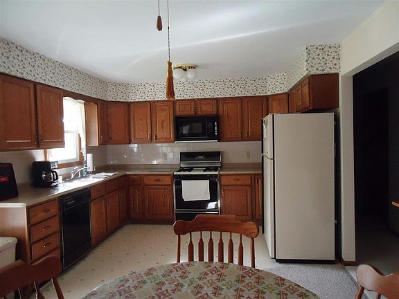 One owner well maintained home. 3 bedrooms, 1 bath, eat in kitchen, living room. Finished lower level with L shaped rec room, office and den or hobby room. Laundry room with shower in lower level. 3 car attached garage and another 3+ car detached garage. Over 1/2 acre lot, located close to school. Appliances stay as is.