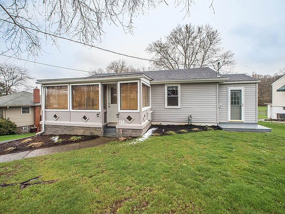 Two bedroom ranch, with garage and storage space galore, is a ready for a new buyer and their car collection. The 1 car integral garage, 24x28 heated detached garage, and 30x18 open garage is any car fanatic or handyman's dream! Full basement with den area offers even more work space and storage. Main living area has been well maintained, complete with large remodeled full bath and newer wood flooring throughout. Finished space off the kitchen is a great area for a mud room. Gorgeous naughty pine covered porch, with tons of natural light, offers a relaxing area to enjoy a cup of coffee and unwind.