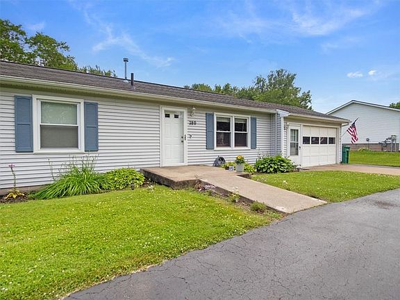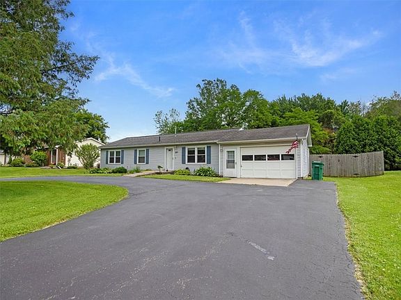 Upgrades galore in this impeccable country ranch with huge fenced rear yard and front circular black top driveway. Upgrades include Updated kitchen 2023 with new flooring & sky light, new refrigerator, new elec.. oven range 2023, dishwasher 2024, remodeled baths 2022. Third bedroom was converted to laundry room, easy to convert back to bedroom or office space. Home interior freshly painted 2023.Ceiling fans in both bedrooms and the kitchen. Wander out from the new kitchen onto a huge deck built with treks decking and enjoy the Large rear yard fully fenced. Home is handicap accessable. Wayne Central Schools and easy access to Route 104 and minutes to Webster & Penfield. Owner needs time to find suitable property. Delayed negotiations to June 25th at 10am