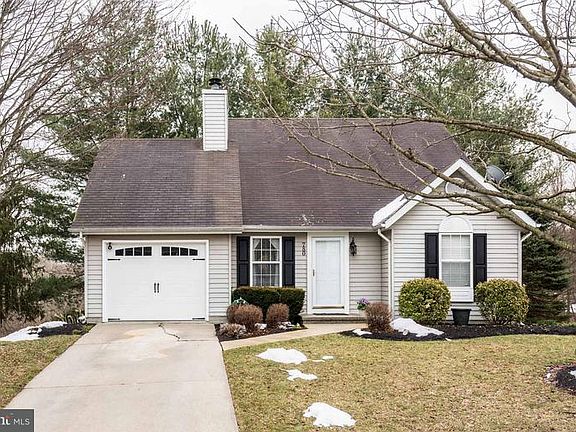 Adorable cape cod with tons of updates. 1st floor master. Hardwood laminate flooring on 1st floor. Newer carpet in bsmt & master bed. New granite countertops, sink & ss appliances, garage door, toilets, light fixtures. All new HVAC (inside & out). Basement is a walk out & has a fireplace-cozy for chilly nights! Backs to woods. Extensive landscaping out front. On a cul de sac too!