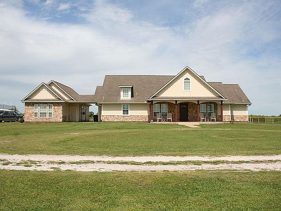 Attention horse lovers or 4H families. A custom home situated on almost 20 acres, just 20 minutes from Bryan-College Station! This beautiful home is over 3,000 sq. ft. Kitchen has granite counters, elegant cabinets, stainless appliances, island & large pantry. Spacious master suite with sitting area & master bath with separate shower & garden tub. Property features a sunroom and private study. Large barn with multiple pens, chute/squeeze, tac room, hay loft, & rain catchment system with irrigation access points throughout each pasture. Dimensions are approximate.