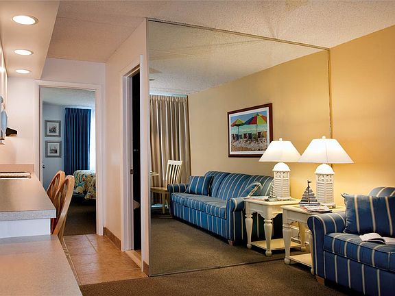 Being offered at the Concord Suites, this highly desired 1st floor unit is located on the west end adjacent to the west pool. It has a separate bedroom with 2 queen sized beds, 1 full bath and a living room/kitchen area. The latter boasts a queen pull out sofa and an eat in table for 2 to 4. The kitchen consists of a 2 burner glass top stove, full sized refrigerator, and all the amenities to make you feel at home. The Concord Suites is centrally located on the border between Avalon and Stone Harbor and is within walking distance to many restaurants and shopping. Do not miss out to own your piece of the beach!