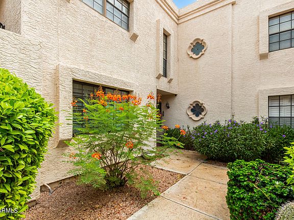 Amazing location! Fantastic 2 bedroom townhome now available in the heart of Scottsdale! Set up against the green belt, El Dorado golf course and direct access to the bike trails from the complex. Close to everything - shopping, parks, restaurants, golf, Old Town Scottsdale, and the airport, what more can you ask for Elegant interior boasts plantation shutters, soothing palette, handsome real wood floors, & tile flooring. The sunken living room is unique to this sought after community and includes a perfectly situated fireplace with a space for TV above it. Adjacent is the dining area with a wall of mirrors adding to its flair. Awesome kitchen is equipped with well-kept appliances, & ample wood cabinets. Double door main bedroom is complete with a beautiful bath w/dual sinks, and walk-in.