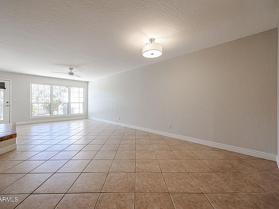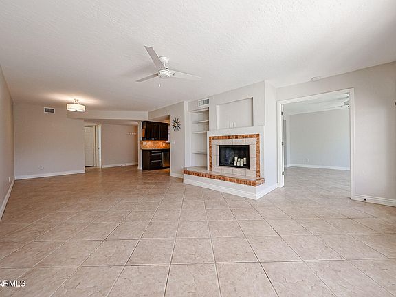 AZ LIVING AT IT'S BEST! OVERSIZED PATIO WITH MOUNTAIN VIEWS! This single level 2BD/2BA unit is located in the quiet area of the complex. Unit backs to the green grass and trees on the south side. Kitchen has stainless steel appliances, newer cabinets with granite counters and opens into the dining room. Fireplace in LR which opens out to the oversized patio. Bedrooms are split for privacy, MST BD in the back of home. Very quiet location. Tile flooring throughout. Kitchen and baths have been updated. Newer windows on part of the home. Patio is good sized for entertaining with an orange and lemon tree. Community offers heated pool and spa and bike/walking path right outside your door. One car garage with cabinets. This is a great single level home! Shows very well!