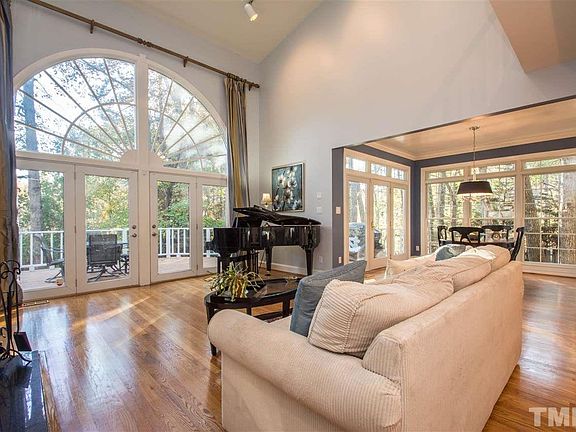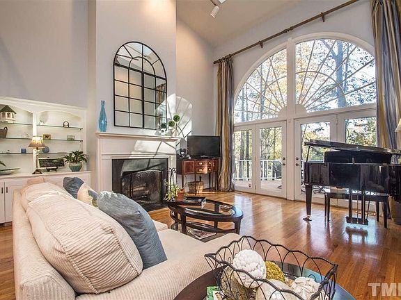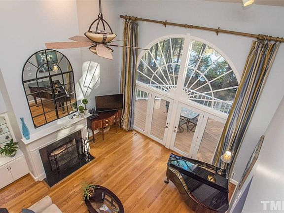 Beautiful home on lake w/lrg fenced lot. Freshly painted interior 2014, lovely hdwd & tile flrs, arched doorways, formal din rm w/updated light fixture, light & bright kit w/granite counters, tile back splash, SS appl's & breakfast nook w/french door to lrg deck w/awning, 2 story liv rm w/frpl, built-ins & wall of windows for a fab view, spacious mstr w/trey ceiling & lrg bath w/dual vanity, whirlpool tub & sep shower. HVAC 4yrs old, updated guest bath, new blinds, new carpet, terrific N Raleigh location