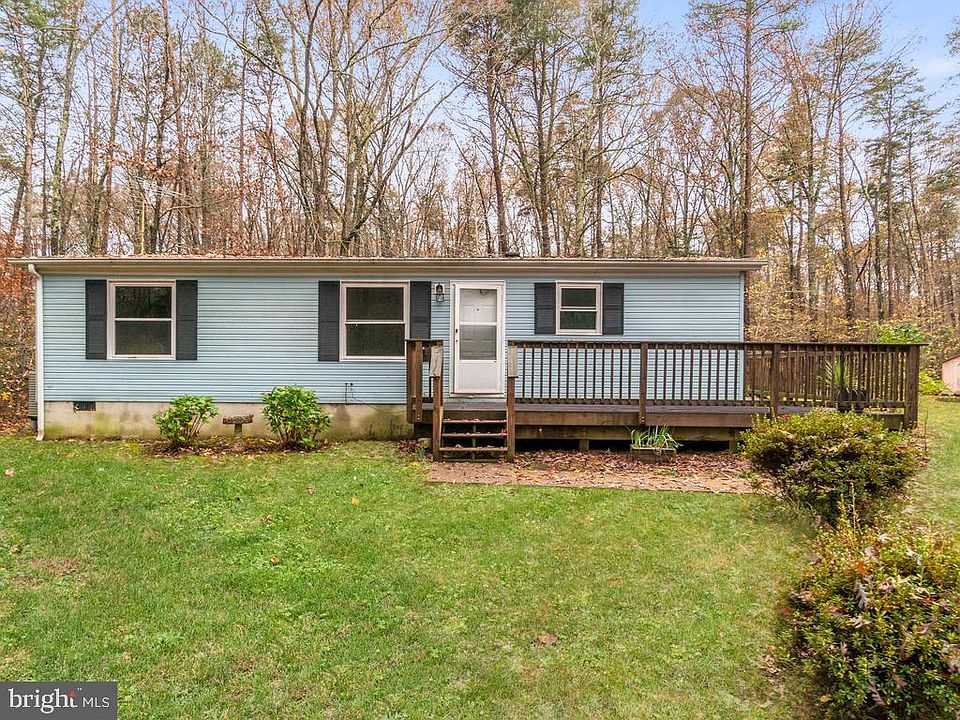 Cute, Very affordable double wide on 3 acres, wooded lot, 3 bedrooms, 2 full baths, very well maintained home with a wrap around deck. Plenty of privacy in a well maintained neighborhood. Just minutes from Lake Anna and the town of Fredericksburg. HVAC is 4 years old. Being sold AS IS. Only Cash or Conventional financing contracts will be considered
