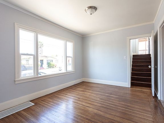 Nicely remodeled Tri level corner lot home. Spacious living room with a cozy fire place, family room and eat in kitchen. Two bedrooms and full bath upstairs with the balcony and views of Oakland Hills. Downstairs bedroom/bonus room with full bath and laundry has it's own entry. Possibilities for in law unit.