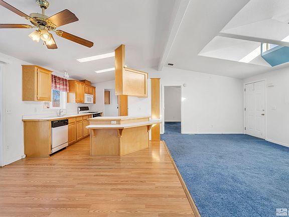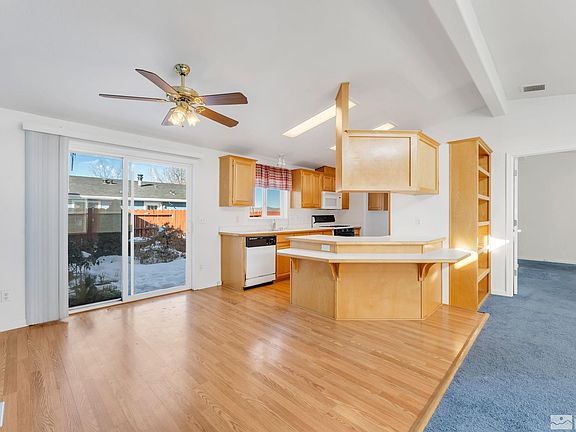 This light and bright open-concept single-story home is the perfect layout for entertaining and inclusive meals! The outdoor space is large for the area, with a patio and wonderful sunlight for your plants and garden. Situated in a gated community just off the initial North Valleys exits, it is centrally located with quick access to the highway and downtown. Featuring a generous primary suite, attached 2-car garage and only 1 step into the home, this home is ideal for every buyer!, Agents please see private remarks regarding the home being 'back on the market' Blue wall in the living + dining area has been painted white.
