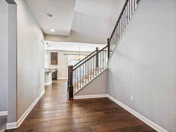 2 blocks to Blackstone Golf Course and Clubhouse! Fabulous floorplan with over 4600 finished square feet and big, oversized rooms. An open kitchen, finished basement and a MAIN FLOOR office or 5th bedroom. Fabulous kitchen with an oversized island, slab granite, gas cooktop, double ovens and stainless steel appliances. Butler's Pantry with a wine cooler and a large walk-in pantry that leads to the formal Dining Room. Light and bright home with beautiful wide plank hardwood floors and newer carpet. 3 LARGE bedrooms upstairs PLUS a very large loft area (could be made into a 4th upstairs bedroom or office). The bedrooms all have WALK IN CLOSETS! There is also a sitting room, nursery, or 2ND OFFICE off the Primary Bedroom. Heated tile floors in the primary bath! Oversized UPSTAIRS LAUNDRY room. The professionally FINISHED BASEMENT has an open great room and additional 3/4 bath. There is room to add another bedroom or WORKOUT ROOM in the basement. Covered back patio and manageable, fenced yard. Just blocks to the golf course, clubhouse, pool and playground. Top rated Cherry Creek Schools. Easy to show!