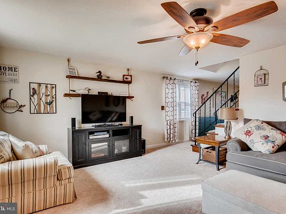 End-of-row townhome in the Eastfield neighborhood! 3 BR /1.5 BA with large living areas and new carpet with hardwood beneath, this home radiates natural warmth and coziness. Dining Room flows into KIT which features stunning cabinetry, SS appliances and breakfast bar (remodeled in '13). Every BR contains ceiling fans and closet space. Fully finished lower level decked out in Knotty Pine paneling (perfect for that Man Cave!) and includes separate laundry room, 1/2 bath and exit to the side yard. New water heater and HVAC in '15. Off street parking, spacious yard and covered rear patio is perfect for entertaining. Conveniently located a short distance from Canton Crossing and several local parks and access to major highways! See it before it's sold!