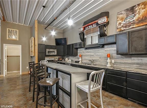 For motorsports enthusiasts in the Kansas City area, thereâs no place like StoneGate Motorplaza. The Private Garages: a gated community of premium garage condominiums with full garage and space that can be customized to include a private office, workshop, urban cabin, or any way you choose. units offer radiant heated floors, floor drains, sprinkler system, 18 feet wide, 13 feet high overhead garage doors, 200 amp electricity. this unit boosts full kitchen, bar area, office and room for 6 cars.