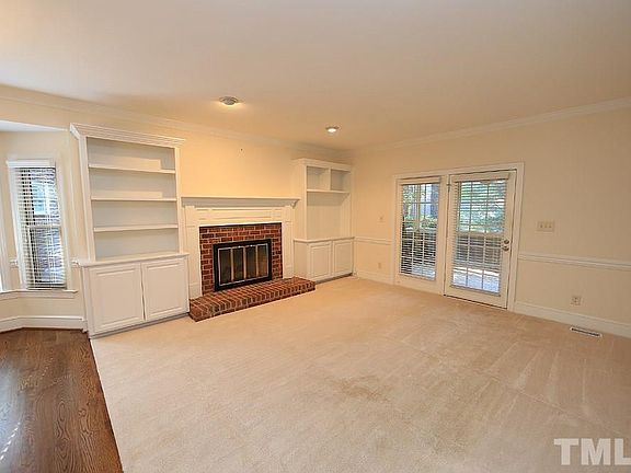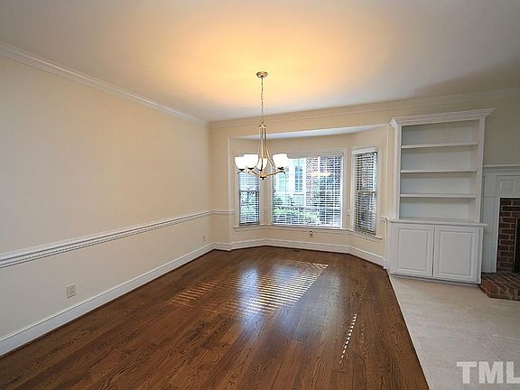 End Unit townhome nestled within the desirable Carriage Bluffs community just off Creedmoor Road moments to I-440, I-540, Crabtree Valley, North Hills & Brier Creek! Beautifully updated kitchen & baths, 1st floor owners suite, hardwood flooring, two bay windows & two spacious 2nd floor bedrooms. Kitchen features granite counters, stainless steel appliances & breakfast area. Open design living & dining area with built-in bookshelves & gas fireplace. Screened porch, deck, one car garage & expanded driveway!