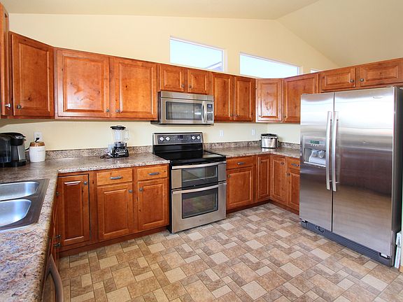 Main level living and open floorplan at their best in desirable High Gate Farms in Fountain. Check out this 4 BR, 3 BA, 3 Car, rancher with no neighbors behind you, just a walking trail, open space and D8 schools. features include vaulted ceilings, lots of natural light, breakfast bar, stainless steel appliances, A/C, stucco exterior, huge master suite with fireplace & 5 piece master bath with jetted tub. Lots of storage or room to grow in the unfinished portion of the basement. Very close to Ft Carson and Peterson AFB. The house also features a large fenced backyard, no neighbors behind the house which makes it feel real open and spacious. Walking distance to the Fountain Ft Carson High school and Jordahl elementary schools. Super close to Ft Carson and Peterson AFB in an HOA community. the master bedroom-bathroom suite features a corner gas fireplace and separate door to the backyard and large 5 piece master bathroom with jetted tub and walk in closet.