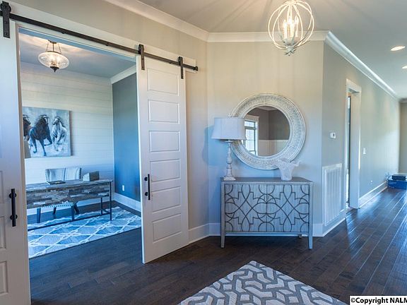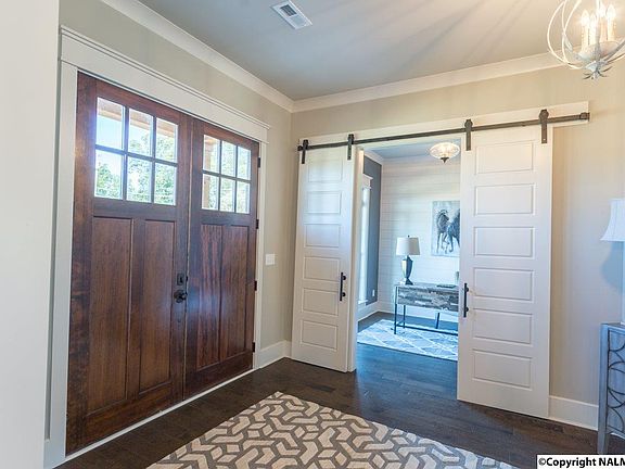 Brand New Executive Home on a .65 acre lot in South Huntsville. Parade of Homes house. The Southern style and charm begin before you even enter the house. You will love the 2 fireplaces(1 gas log & 1 wood burning), barn door, ship lap, open floor plan, 10 foot ceilings, 2 car + 1 car garages, fenced yard, mountain views, covered porches, 4 bedrooms, bonus room, hearth room off large eat in chef's kitchen, gourmet gas range, formal dining room, study, flex room that could be heated and cooled storage, craft, office or exercise room, 5 baths, granite, custom finishes, large pantry. Olive Chase is located behind the old Grissom. Don't miss our 3D virtual tour.