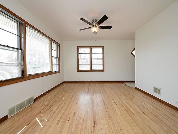 Original owners build this home. Original wood floors on main level. Wood floors under carpeted bedrooms too. 2 full baths, freshly painted interior and new carpet. Lower level use to be a separate apartment, but old kitchen area is a wet bar now. Great area for adult child or parent, no steps to this area. Home has really good bones and in great condition, update to your liking. Home was pre inspected. 2 car gar looks detached but it is not, there is an enclosed hallway that connects the garage and house. Garage has gas and water in it. Extra large drvieway, fenced patio above garage, corner lot. The lower level bedroom has almost a conforming window.