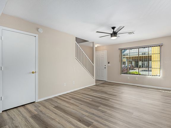 This 2-bedroom, 2.5-bathroom townhouse offers modern vinyl flooring, a fully equipped kitchen with stove, dishwasher, and microwave, as well as a convenient washer and dryer. Step outside to enjoy your own private patio or take advantage of the covered parking spot. Inside, stay comfortable with ceiling fans throughout. Plus, this community offers a refreshing pool and relaxing spa for residents to enjoy. Don't miss out on this fantastic opportunity to call this townhouse your new home. Owner pays for water. 1 year lease.