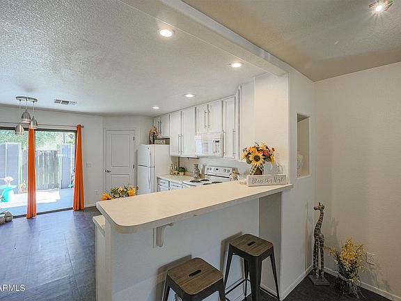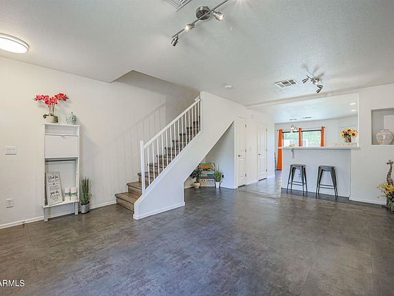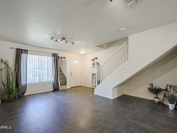2 master suites upstairs w/private bathrooms & guest bathroom downstairs in this spacious Townhouse. This Townhouse has an open floor plan with a breakfast bar, eat-in kitchen & sliding glass doors that lead to a spacious private patio. Townhouse has a laundry room w/washer & dryer, walk-in pantry, plenty of storage, work space under the stairs for a desk & no carpet downstairs. Upstairs only has carpet in secondary bedroom which is new, vaulted ceilings & linen closet. Townhouse has newer A/C unit. Complex has pool, Jacuzzi & 1 assigned covered parking space w/plenty of guest parking. HOA covers roof repairs/replacement, water/ sewer/trash & exterior maintenance. Community is close to downtown Glendale, Westgate Entertainment Plaza, Cardinals Stadium, shopping & grocery store.