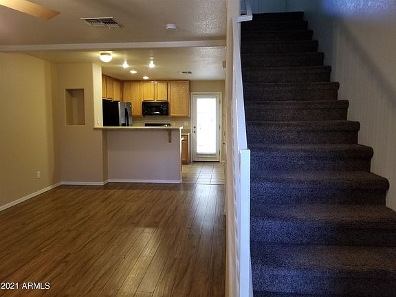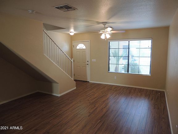 This Move-in Ready Townhouse has an Open Floor Plan, neutral paint colors, a spacious Kitchen which opens up to Breakfast Bar, Eat-in Kitchen Area & Great Room. Back French Door opens to a Private Patio with exterior storage closet. Downstairs also has one Guest Bathroom, inside Laundry Room w/Washer & Dryer. Upstairs features 2 Master Bedrooms & shared Full Bathroom. Newer A/C Unit. Community has Pool, Hot tub & 1 assigned covered parking space w/plenty of guest parking. HOA covers roof repairs/replacement, water, sewer, trash, exterior maintenance & front landscape. Conveniently located to shopping/dining, ASU West, Grand Canyon University, Glendale Community College, and I-17 freeway. Tenant Rights with 48 hour notice required. Schedule your showing today!