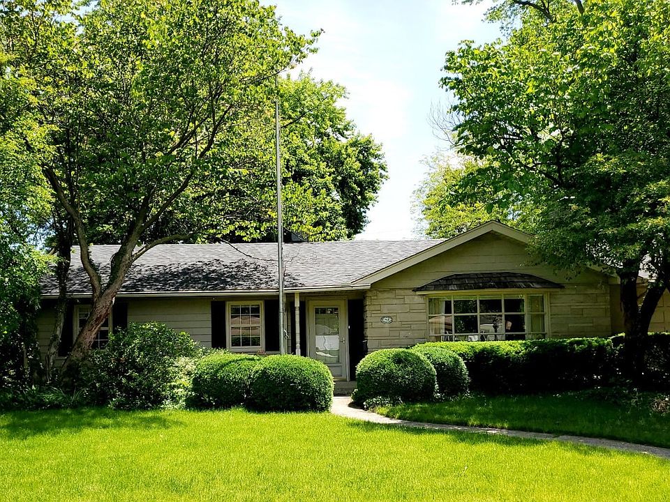 Sprawling ranch on private, landscaped lot. Traditional ranch floorplan includes large living room, dining room, kitchen, and 3 bedrooms in front of home. Large addition on rear of home includes spacious rec room with vaulted ceiling and brick fireplace, owner's bedroom with adjoining bath, a finished laundry, and screened porch. Finished workshop/utility room adjoins the over-sized garage.