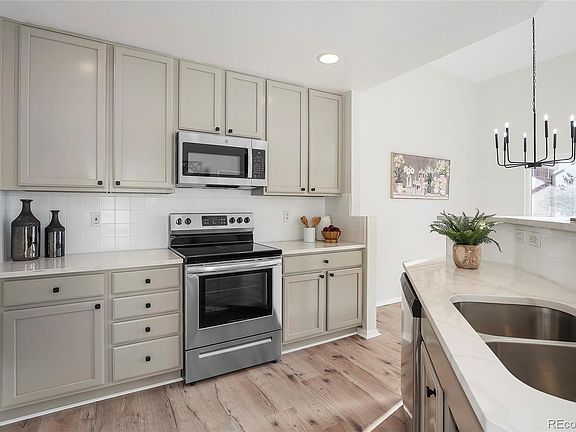 Homes at the Heritage Eagle Bend Golf Course are highly sought after, and then you add the fact this one-level home is updated, in a gated community, and also backs to the golf course - WOW!!! You’ll have a master bedroom with en-suite ¾ bathroom and walk-in closet, an additional bedroom, 3/4 bathroom, and a modern open floorplan with vaulted ceilings. Check out the stylishly updated kitchen and island, living room with gas fireplace, beautiful flooring, and lots of natural light. There's also laundry and a private 2-car garage. Updated features include interior paint, new carpet, granite kitchen countertops, stainless steel appliances, lighting fixtures, hardware, outlets and switches, toilets, and the list goes on! Within 1 mile are restaurants, coffee shops, grocery stores, shopping, and you'll have easy access to E470 getting you quickly to I25 or the airport. Come check it out and fall in love!