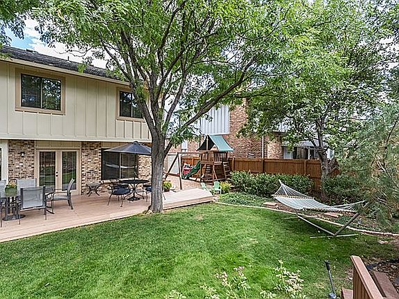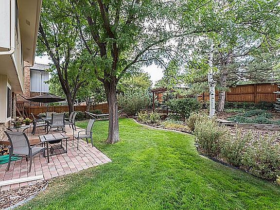 Spacious home on the corner lot of a cul-de-sac. Private yard; no houses behind you. New roof. Updated kitchen with brand-new stainless steel appliances (including double oven) and ample corian countertops. Open floor plan with formal dining is great for entertaining. Hardwood floors throughout main floor. Karastan carpets on other levels. Gas log fireplace. Great indoor-outdoor flow. Oversized backyard includes large Trex deck, gas line with attached grill, pergola, and separate play area. In summer, gardens add to outdoor beauty. Three bedrooms plus loft upstairs, including master suite with vaulted ceiling and five-piece bath. Full finished basement includes ample storage, fourth bedroom, and a non-conforming fifth bedroom. Oversized garage. Home is located in sought-after Cherry Creek School District No. 5. Elementary school is top-ranked Dry Creek Elementary. Home is 600 ft west of picturesque walking/biking trail. Foxridge is a friendly neighborhood with great community events.