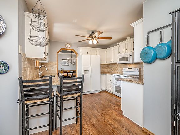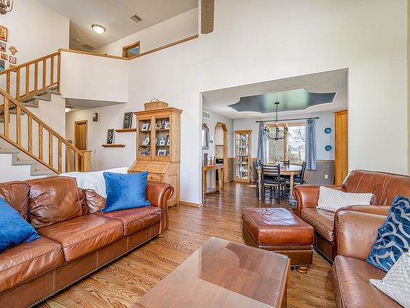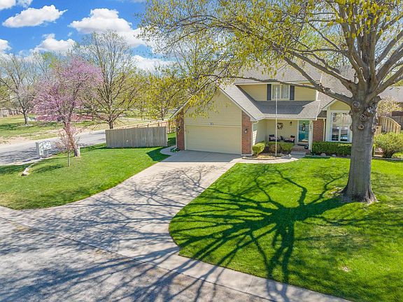 Wonderful 2 story home in Maize schools now for sale! 4 bedrooms, 3 1/2 bathrooms, 2 car garage with work bench & built-in's. Lovely cul de sac corner lot situated right next to nice park-like playground area! Lots of upgrades & well cared for. Gorgeous SOLID WOOD floors adorn the main living areas including entry, living room, dining room, kitchen and breakfast area. You'll love the vaulted ceilings in the living room and open stairwell from the upper loft. Main floor includes a cozy family room with fireplace and walk out to the stunning entertainment patio! Beautiful stained stamped concrete, shade trees, lush lawn, landscaping and Pergola. Outdoor relaxing and parties will be special! Kitchen is light and bright with white cabinets, beautiful granite counters, custom back splash, crown molding and stove is even vented to exterior. All appliances stay, new dishwasher 2022. Natural light flows nicely though the entire home. Two eating areas, one formal and one breakfast nook. Two family rooms, one on main level and one in basement. Two fireplaces, one on main level and one in basement. Owners' suite features double doors, spacious closet & walk-in closet, double vanity and separate jetted tub and shower. New furnace and hot water heater in 2023! Low maintenance concrete siding! Covered front porch! Backyard fence includes all three sides and is in excellent condition. It also features aluminum posts covered with attractive wood panels for a more finished look. Basement includes 4th bedroom, 3rd full bath, a 2nd family room with fireplace, Bose surround sound system with stereo, 6 speakers, sub-woofer and plenty of storage. Irrigation well and sprinkler system. Hurry, schedule your showing today!