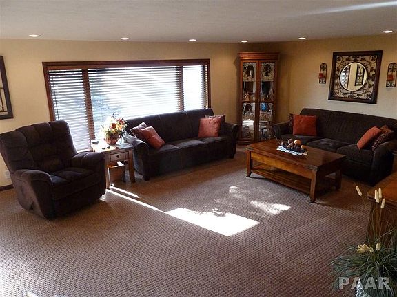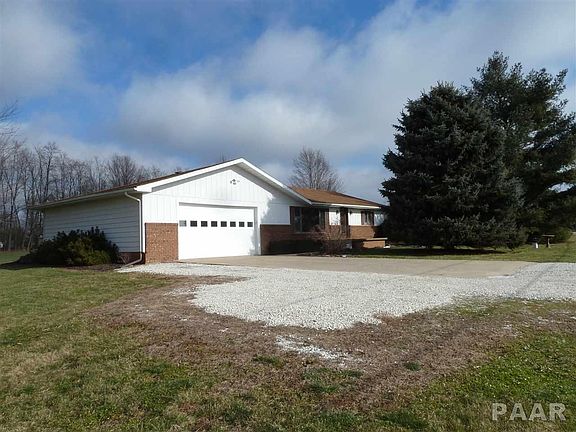 Country Retreat. 2/3 bedroom Ranch on 2.46 Acres complete with 40x32 out building with Power, Water, Heat, Car Lift, Loft storage, and Office. NEW bathrooms from Tile, Vanities, Showers/Tub and tile surround. New Flooring throughout entire home. New Granite counters, Tile floors and Large window in Kitchen. Crawl space has blown in Insulation, Gravel and Plastic barrier. 3rd bedroom can be a 2nd family room or 3rd bedroom. This home is a Must See. Country living yet minutes to Bartonville, Interstate and Airport. RD Approved for 100% financing. Zoned for 2 horses.