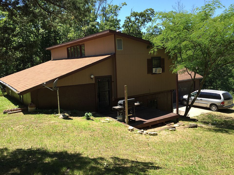 This is an all electric, custom-built, split-level, partial earth contact house built in 1981 on a lush private 3 acre tract at the head of a dead end road. Travel time is approximately 12 minutes from Jefferson City and 25 from Bagnel Dam Lake Ozark. Finished oak kitchen cabinets with new carpet and laminate flooring plus finished native oak and walnut throughout including, staircase, railing and trim. Main living area and kitchen connect with a beautiful breakfast bar under a vaulted insulated paneled ceiling. Climate controlled with electric baseboard, passive solar and window air (stays very cool in Summer) and also augmented by a (very efficient) large wood-burning stove. There is plenty of fuel available from surrounding woods within the property. The house is very well insulated has a new roof and updated with appliances in just the past year. The property is in the Russellville Mo school district and comes with reasonable property taxes.