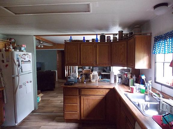 Double Wide on concrete runners, with a nice back deck, in excellent private location, just minutes from town. Deer and Turkey Galore on this 10 acres m/l.Property features a shop with concrete floor, and 2 ponds.