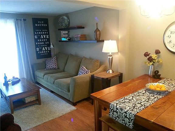 Shows like a model! End unit recently painted. Beautiful laminate floors with a nice color scheme. open bar counter to an updated kitchen, under counter lights accents Dining /kitchen area. Living room opens to a nice balcony deck that features some great sunsets see pics. The clubhouse is within walking distance and features a pool, tennis court, basketball court. Great for anyone who travels a lot ; The Airport is 10 minutes away. Robinson Mall & Market District is 20 minutes away. The pool membership is separate for any one who want to join. * A friendly dog name Max may be there*