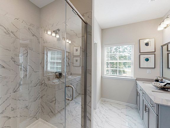 The exceptional Cameron II plan offers two stories of inviting living space. On the main level, a kitchen overlooks a casual dining area, which flows into a large great room. On the upper level, two generous secondary bedrooms--both with walk-in closets--share a full hall bath, and a secluded primary suite boasts two walk-in closets and a private spa-like bath with dual vanities. A convenient laundry room completes the second floor.