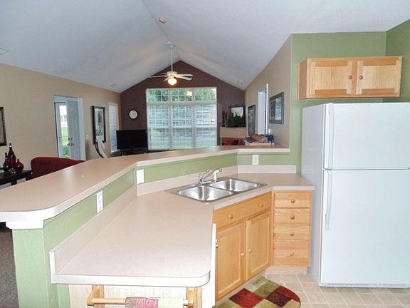 Live worry free in this well maintained, easy living ranch condo in this golf course community! Vaulted ceilings add to the open floor plan. Easy entertaining in the big kitchen with pantry, breakfast bar and planning desk. Dining area opens to private fenced patio. Master suite with vaulted ceilings, private bath with double sinks and walk-in closet. Long second bedroom can be utilized for multiple uses. Gas fireplace is the focal point in the living room! Convenient first floor laundry. Enjoy amenities like the exercise room, pool and access to the party room.
