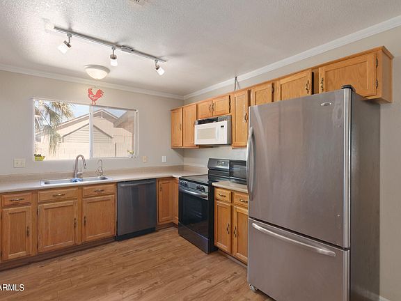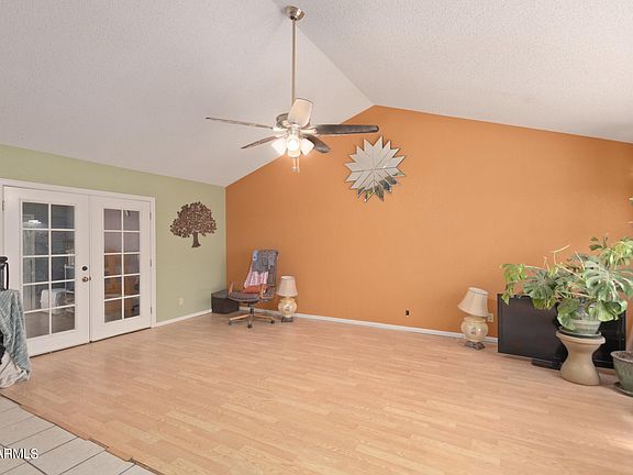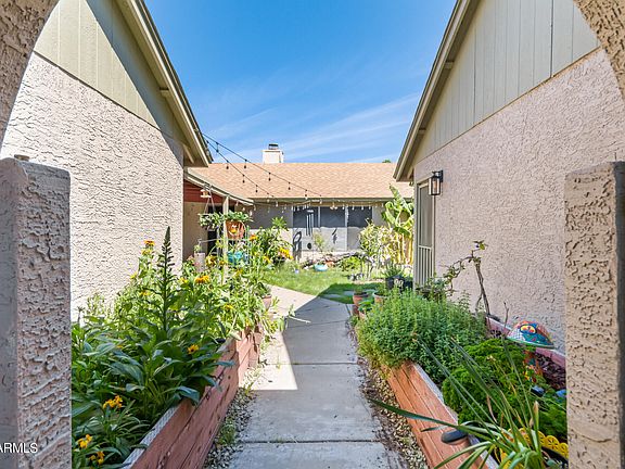 Welcome to this inviting 3-bedroom, 2-bathroom home nestled in the welcoming community of Peppermill Run. Situated on a desirable N/S exposure lot with an RV gate and NO HOA to worry about, this home offers the perfect blend of convenience and comfort. As you approach, you'll appreciate the low maintenance landscaping and a lovely private courtyard, providing the ideal spot to enjoy a morning cup of coffee before the day begins. Step inside to discover a soothing two-tone neutral color palette, vaulted ceilings, and durable wood-like plank and tile flooring throughout, with plush carpet in the bedrooms. The welcoming family room features a cozy fireplace and easy flow through double French doors to an enclosed bonus room, expanding the living space and offering endless possibilities for relaxation or entertainment. Next, explore the lovely kitchen, equipped with included appliances, just the right amount of cabinet and counter space, and a view window above the kitchen sink that brings in natural light. Step out to the backyard and enjoy the tranquil space that extends into the side/courtyard, perfect for entertaining and dining alfresco under the gazebo or playing a game of hoops on the basketball court. Back inside, retreat to the primary bedroom with a private exit to the courtyard patio and an ensuite bathroom featuring dual sinks, a shower/tub combo, and a large walk-in closet. The two secondary bedrooms, guest bathroom, and laundry space, including the washer and dryer, round out this incredible floor plan. Conveniently located close to popular restaurants, convenient shopping, and with easy access to Loop 101, this home offers the perfect combination of comfort and convenience. Don't miss out on this fantastic opportunity! Submit your offer today.