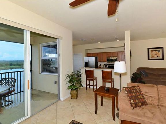 Highly sought after 4th Floor Corner Unit with amazing lake and golf course views! Completely furnished 2 bedroom/2 bath, kitchen with eat in area, and breakfast bar. Stainless steel appliances, solid wood cabinets, solid surface countertops, and separate area for a den or formal dining. Neutral colors and large ceramic tile on the diagonal throughout. Conveniently located, there is a large storage room across the hall from the unit. Covered assigned parking is included plus plenty of additional parking for guests. Popular River Strand Golf & CC Community fees include golf membership, Har-Tru lighted tennis courts, 3500 sq.ft. aerobic & fitness facility, resort style heated pool, separate resistance pool, tiki bar, poolside grill, and a wonderful clubhouse restaurant. Perfect for a residence, vacation home, or rental income. Within 1 mile of I-75 for a quick commute to beaches, airports, shopping, and more. Call today to schedule your private showing.