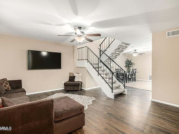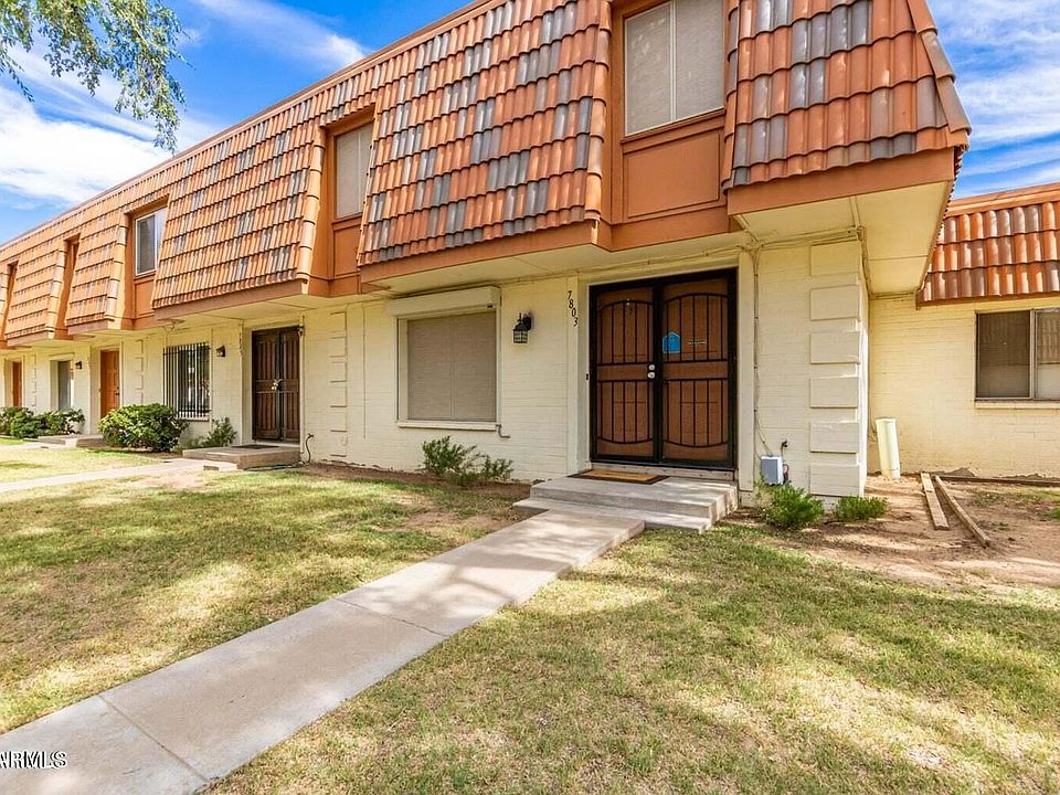 Experience style and convenience in this updated 3-bed, 2.5-bath townhome. Durable tile and vinyl plank flooring complemented by cozy carpeting. Double screened entries invite fresh air while keeping bugs out. Ample storage throughout, including a spacious primary bedroom with en suite and three closets. Outdoor highlights include a large covered patio, storage room, and double covered parking. Enjoy privacy with roll-down shutters and shade screens. Community pool offers relaxation and entertainment. HOA fees cover water, garbage, and sewer for a hassle-free lifestyle.